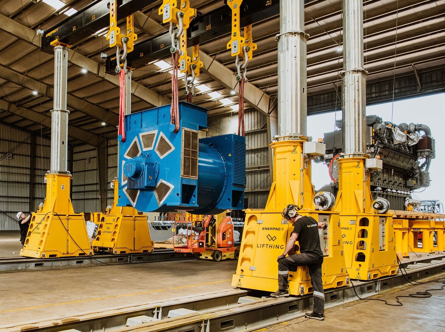 Ons hydraulische portieksysteem kan lasten tot 500 ton heffen met behulp van vier gesynchroniseerde kolommen. Het biedt zowel verticale beweging als horizontale verplaatsing via skidbanen en aangedreven zijdelingse verstelling. Aangestuurd door Intelli-Lift-technologie garandeert dit hybride systeem maximale precisie, veiligheid en flexibiliteit.